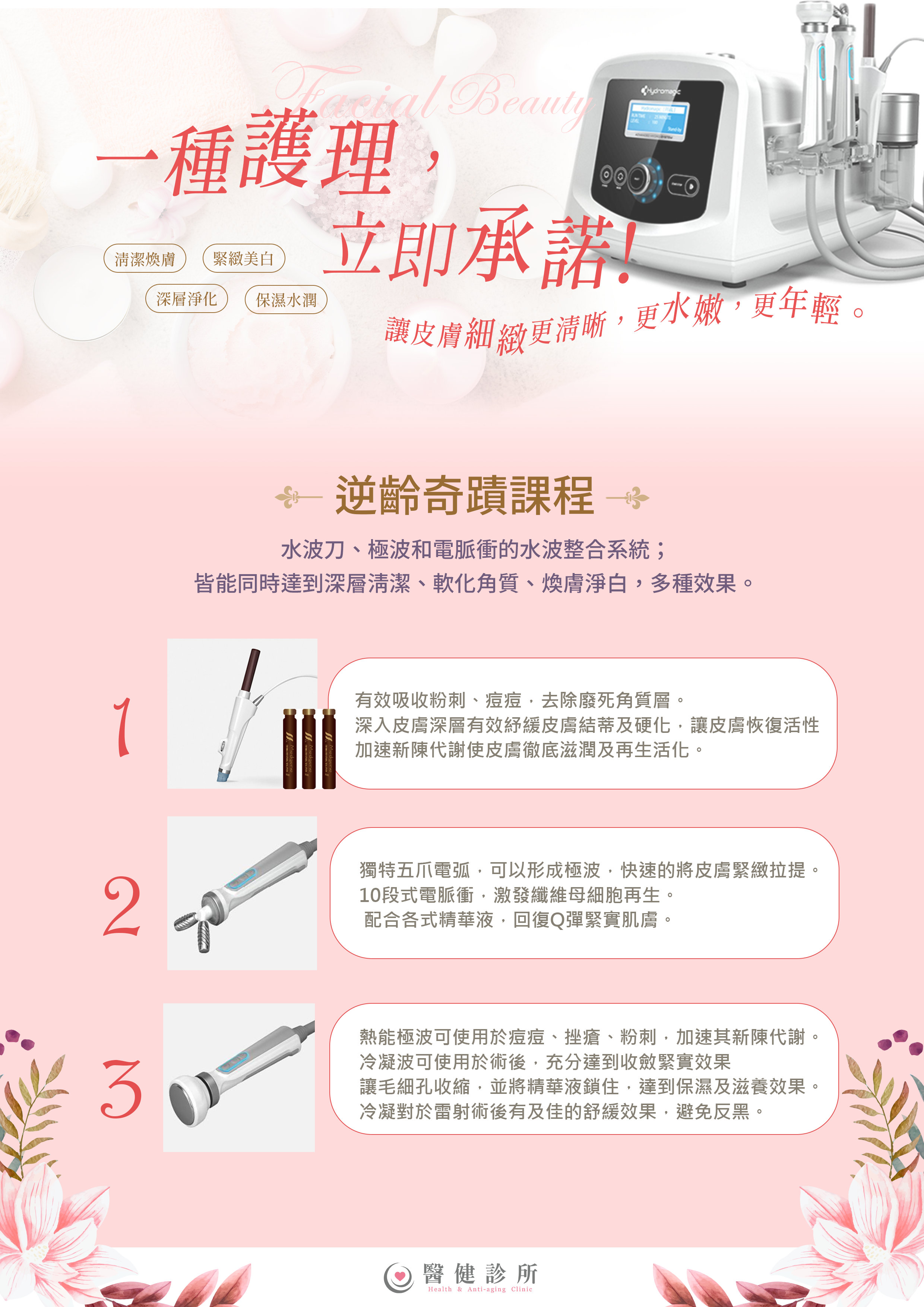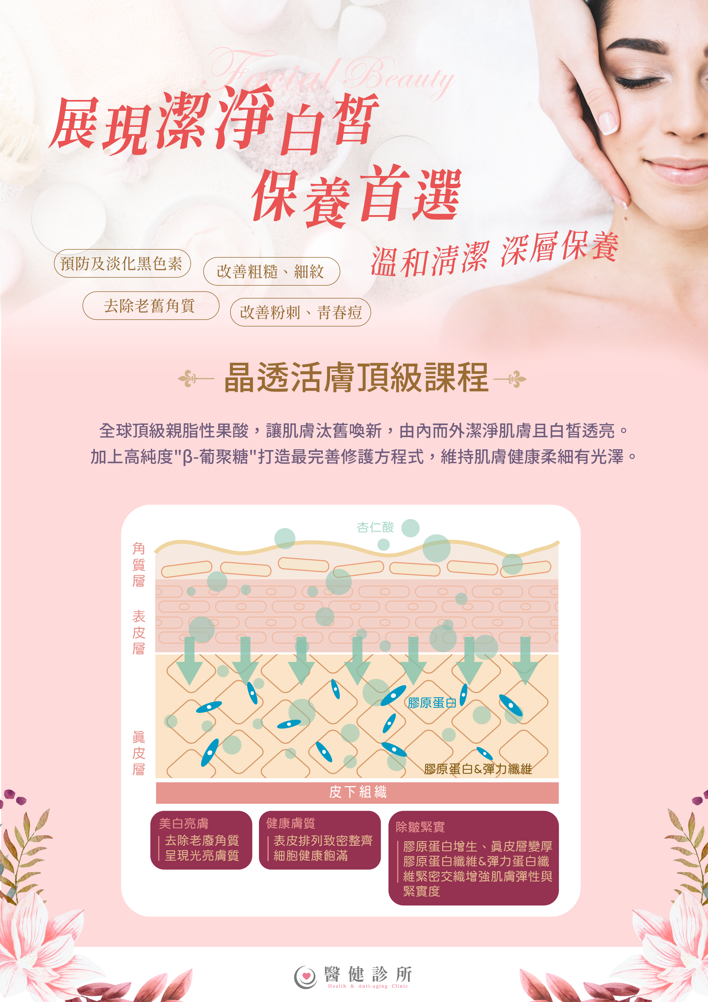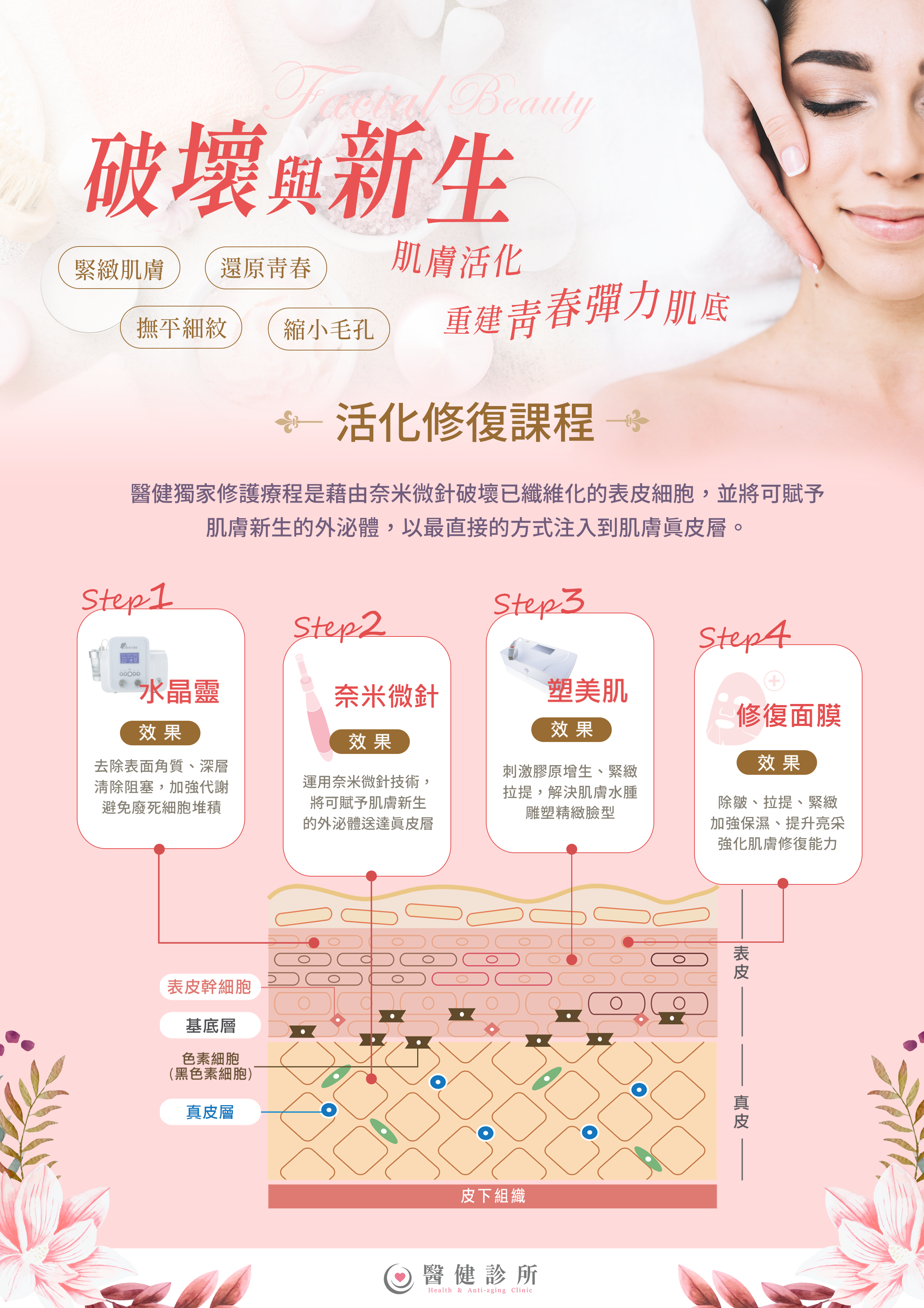 美容課程 術前基底保養 立即預約 保濕水潤課程 立即預約 凍齡抗皺課程 立即預約 逆齡奇蹟課程 立即預約 活化修復課程 立即預約 晶透活膚頂級課程 立即預約 無暇淨膚課程 立即預約 瞬效嫩白課程 立即預約